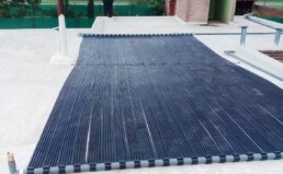 Sistema de climatización de piscina con paneles flexibles de caucho