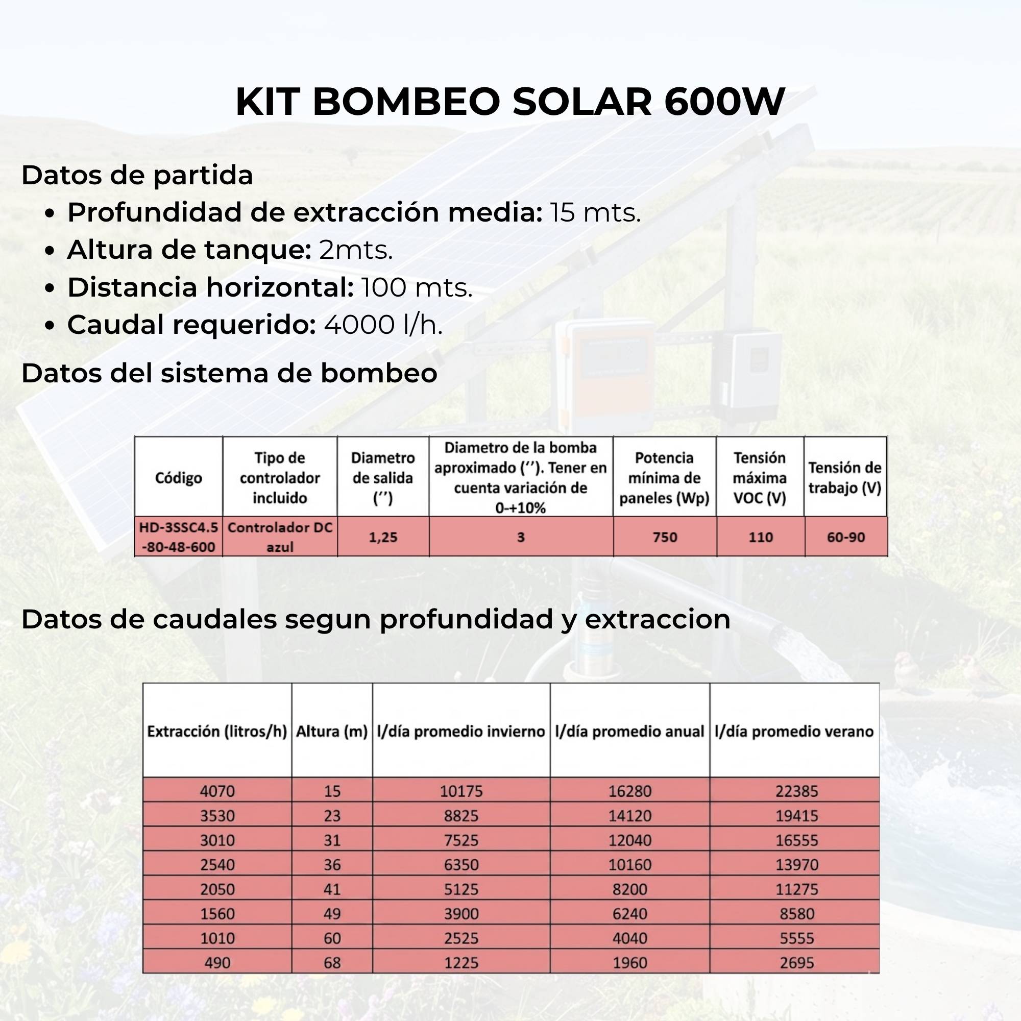Este tipo de instalación permite lograr una total independencia energética en la extracción de líquidos, asegurando un funcionamiento continuo en cualquier ubicación, sin necesidad de conexión a la red eléctrica.