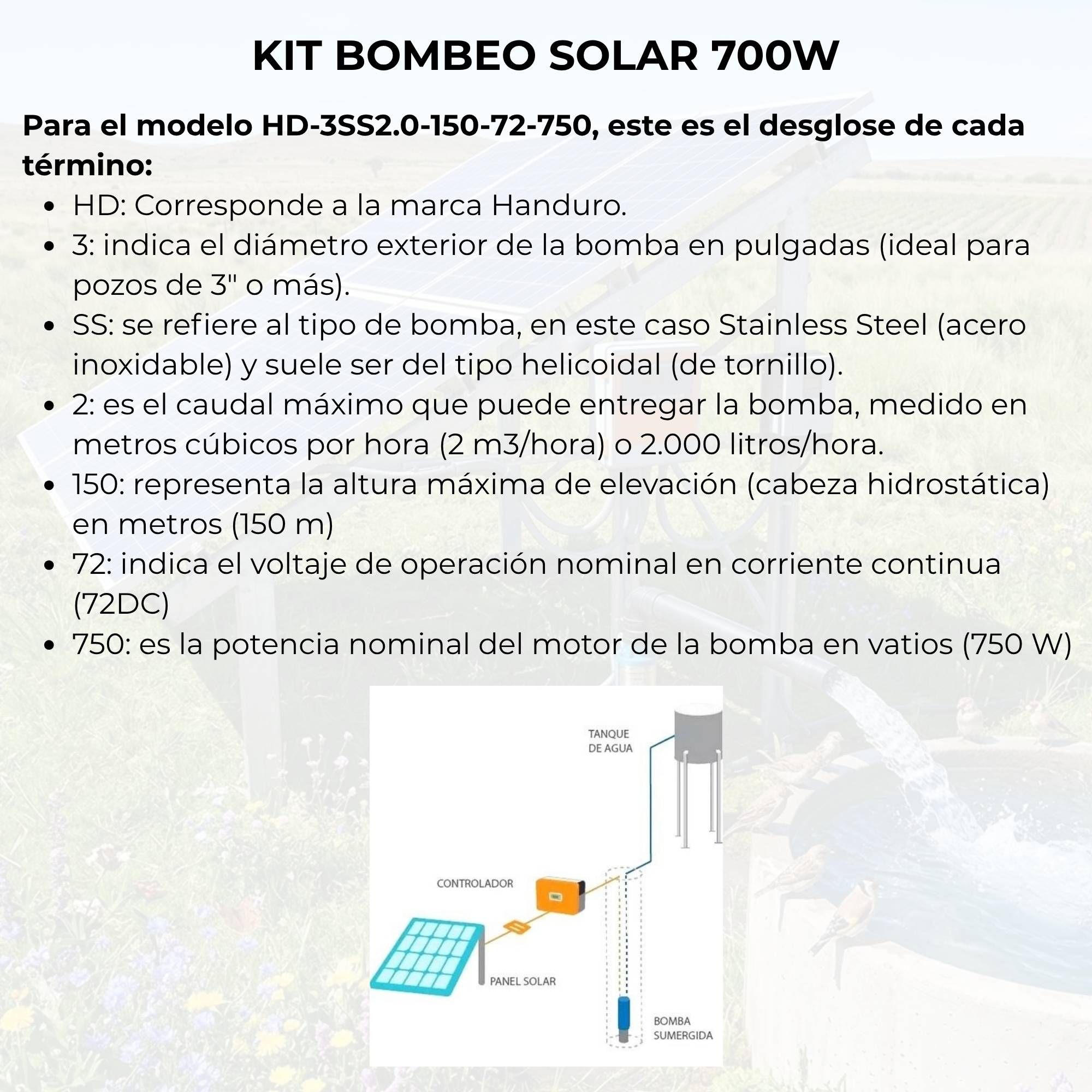 El sistema de bombeo solar autónomo permite la extracción de agua u otros líquidos desde distintas profundidades, impulsándolos hacia depósitos de almacenamiento de forma eficiente y sustentable.