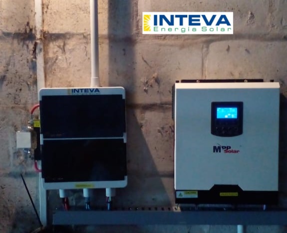 El equipo es provisto con un inversor cargador de 2.0 kW de potencia nominal (4 kW pico), con regulador de carga incorporado. Onda senoidal Pura. Diseñado para trabajar con una segunda fuente de energía (red eléctrica, grupo electrógeno, etc.). Transferencia automática programable. Ideal para sistemas de emergencia ante cortes de energía (funciona como UPS). Pantalla LCD para visualización de parámetros. Puerto USB para descarga de datos.