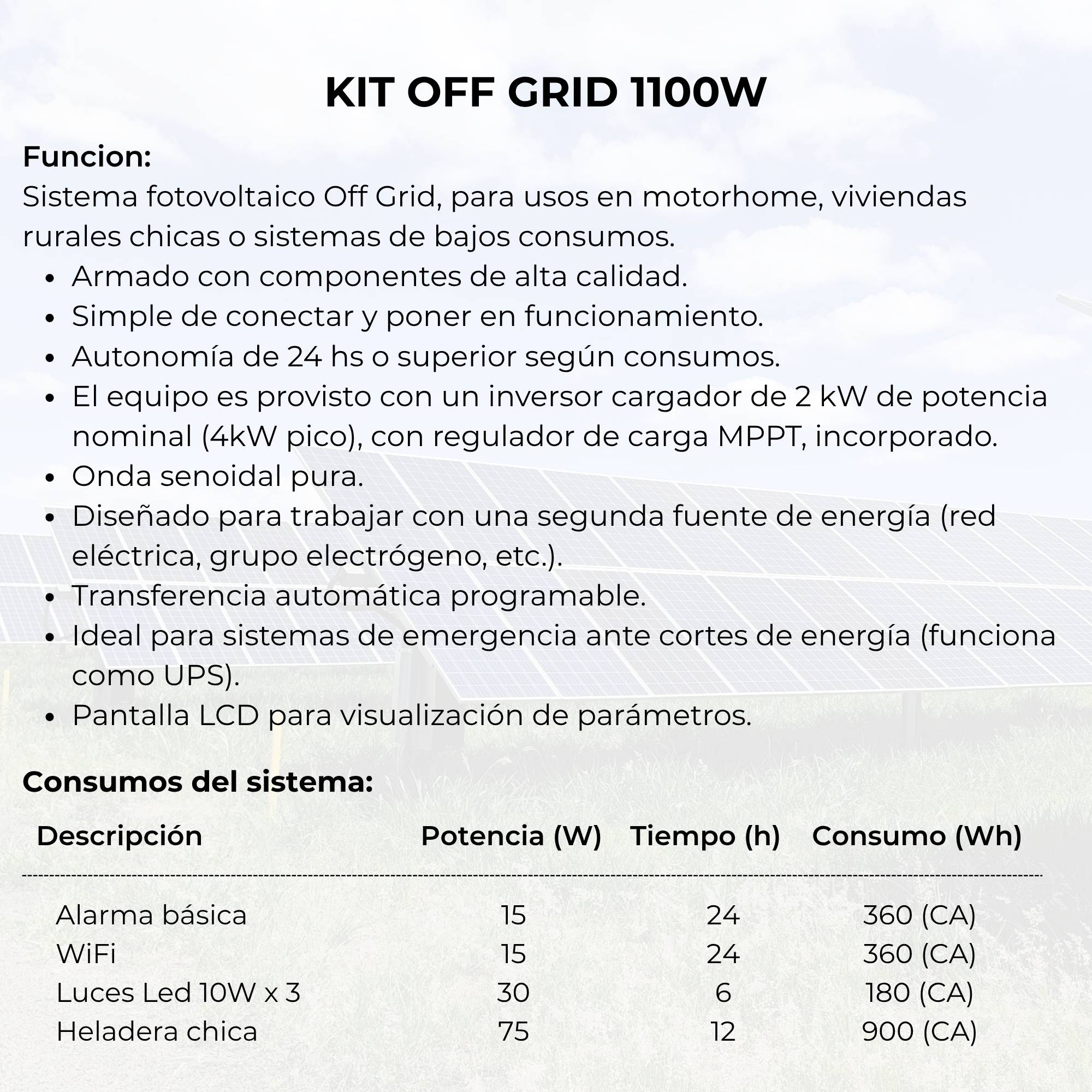 KIT OFF GRID 1100W