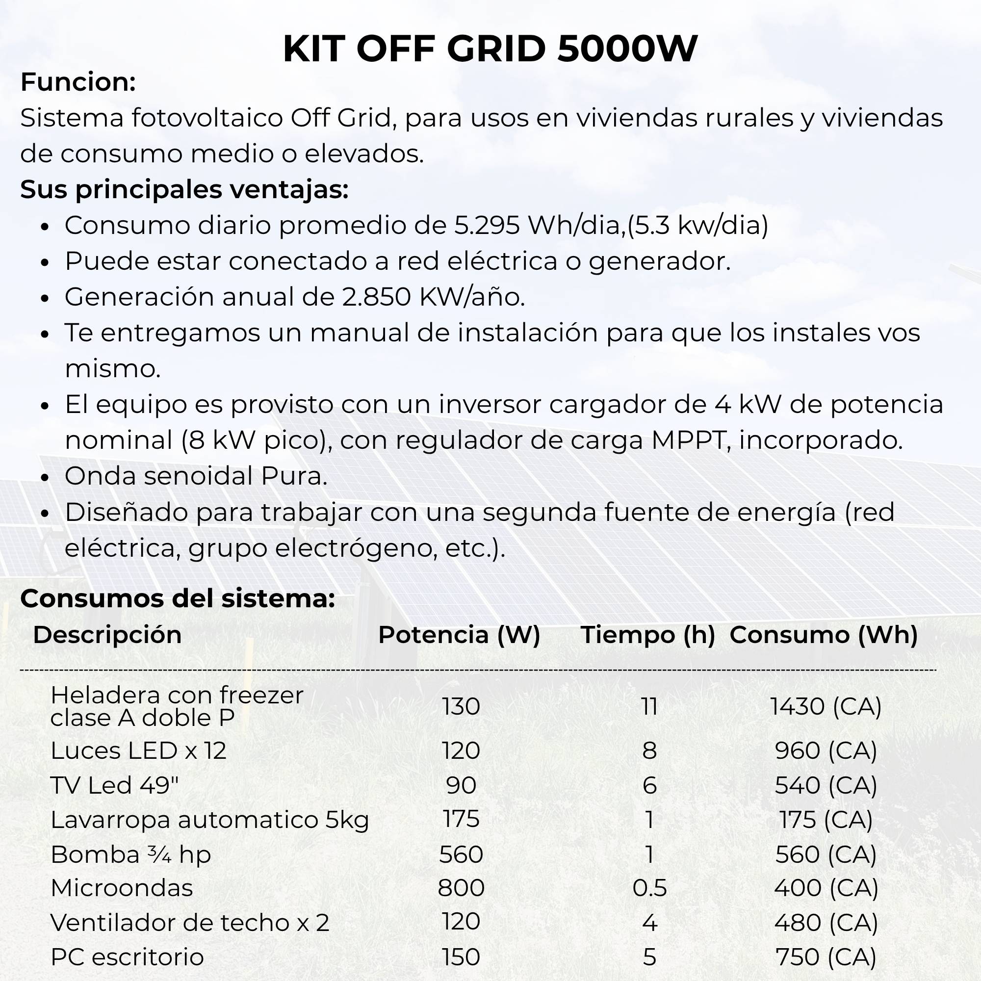 Sistema fotovoltaico Off Grid, para usos en viviendas rurales y viviendas de consumo medio o elevados.